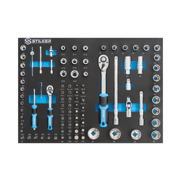 O Carro de Ferramentas 7 Gavetas com 147 Peças da Sodise foi concebido para responder às exigências do trabalho profissional em oficina. Combina estrutura reforçada, elevada capacidade de carga e um conjunto completo de ferramentas essenciais, devidamente organizadas em módulos de espuma de alta densidade.