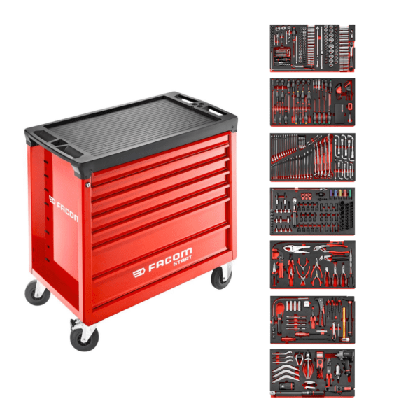 Carro de ferramentas 7 gavetas + 417 peças + acessórios – Facom