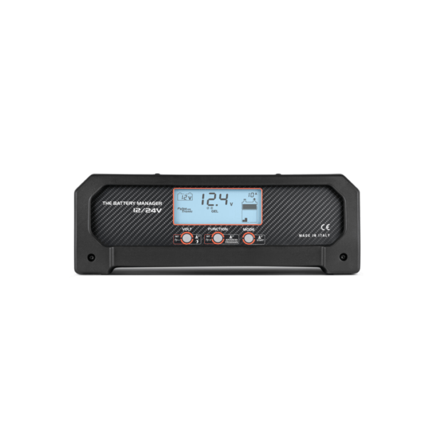 Gestor de baterias eletrónico multifunções (BATTERY MANAGER) para a manutenção completa de baterias WET, GEL, AGM, MF, PbCa, EFB, Li de 12V/24V e para atividades de apoio nas operações, incluindo diagnóstico, nos veículos realizadas nas oficinas, carroçarias e stands de automóveis.